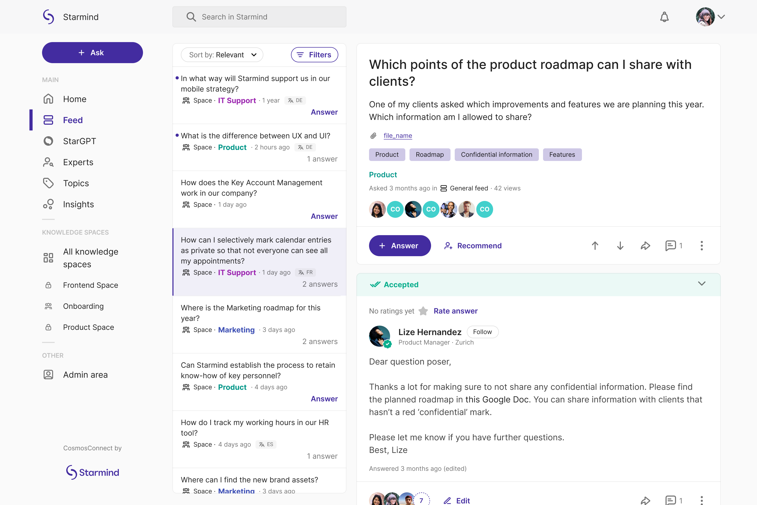 We’ve made improvements to how Starmind understands your knowledge, surfaces the right experts, and helps admins manage topics. Now, teams get to the right answer faster with less effort.